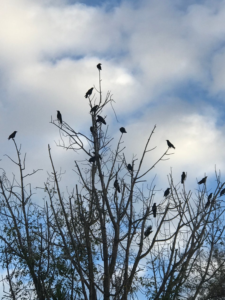 When the crows gather with loud chatter on the branches of a tree behind our apartment complex, I know that a storm is on its way.