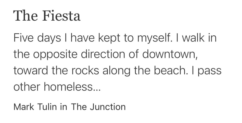 Pingback: The Fiesta, by Mark Tulin/ The Junction – Poetry Art Heart