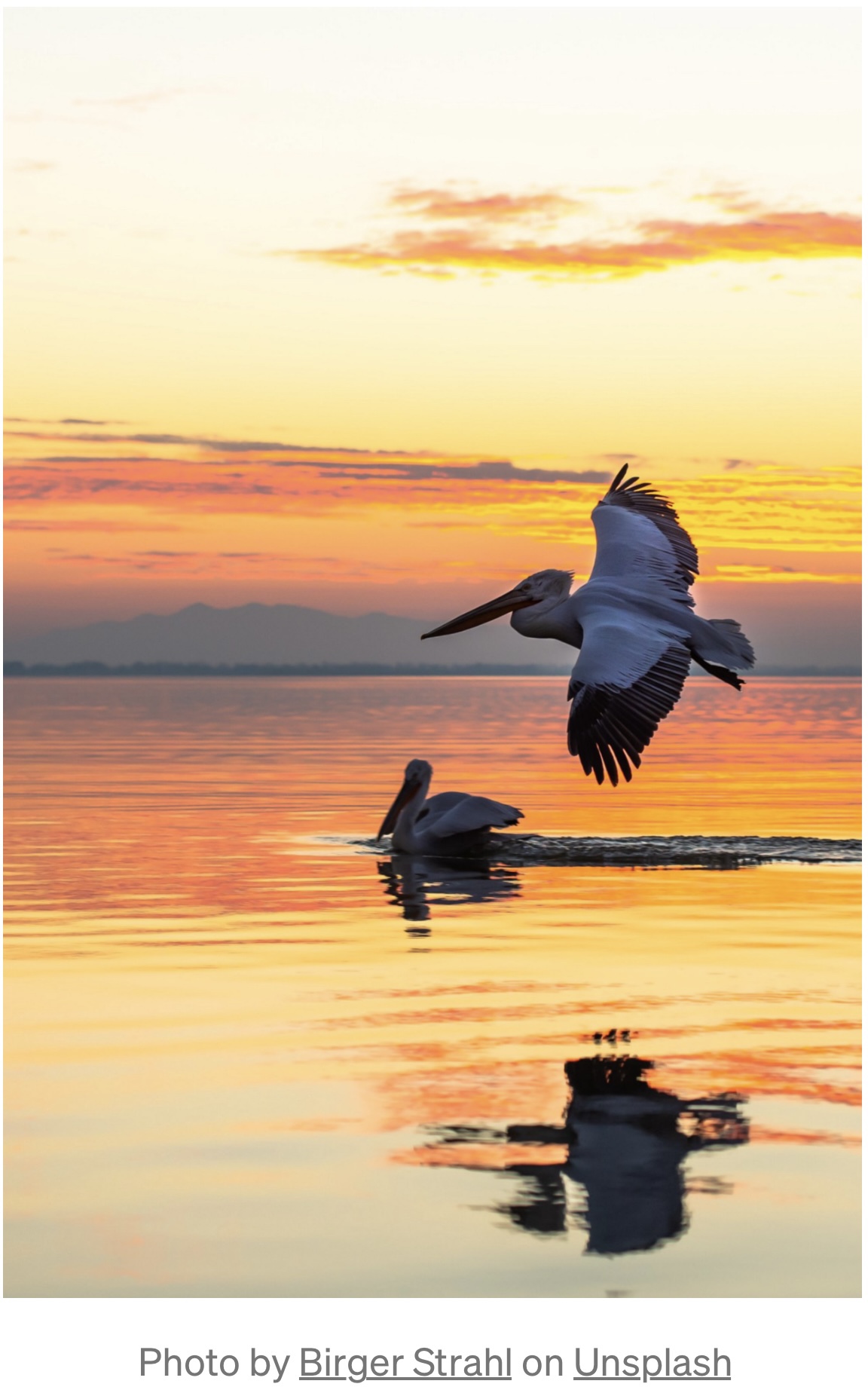 Poetry Moving with the Tao, by Mark Tulin/Blue Insights by Mark TulinSeptember 22, 2021 Comments 9 link.medium.com/eUvoexW6Kjb Where pelicans fly in a straight line. Share this: Share on Facebook (Opens in new window) Facebook Share on LinkedIn (Opens in new window) LinkedIn More Share on X (Opens in new window) X Share on Pinterest (Opens in new window) Pinterest Share on Reddit (Opens in new window) Reddit Share on Tumblr (Opens in new window) Tumblr Like this:Like Loading... 9 comments on “Moving with the Tao, by Mark Tulin/Blue Insights” ecopoet September 22, 2021 Ah! natures beauty – eco Loading... Reply Mark Tulin September 22, 2021 🌵🏝 Loading... Reply A Star on the Forehead September 22, 2021 Lovely Mark! Blessings! ♥♥ Loading... Reply Mark Tulin September 22, 2021 Thank you!!!! Loading... Reply hitandrun1964 September 22, 2021 Beautiful. Loading... Reply Mark Tulin September 22, 2021 Thank you. 🙂 Loading... Reply Americaoncoffee September 29, 2021 Beautiful! Loading... Reply Mark Tulin September 29, 2021 Thank you. Loading... Reply Theresa September 30, 2021 Definitely need to take a lesson from nature. Beautifully put, Mark! Loading... Reply Leave a ReplyCancel reply Post navigation Previous Post Next Post