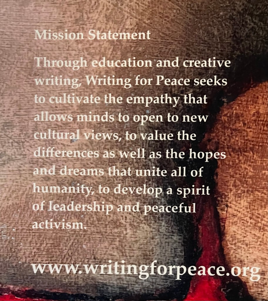 I’m happy to be a part of this fine anthology about fostering peace worldwide. The work on this book was quite an endeavor. There are 600 pages of how different cultures struggle against social injustices. All of the writers have one thing in common–they all write for peace.