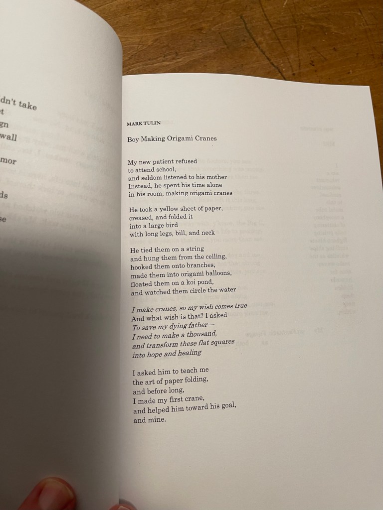Poems on cancer, grief, hope, and healing. This book’s sales proceeds will be directed towards charities in aid of cancer research and support. Close Up is available at Orchard Lea Books. I’m happy that my poem, “Boy Making Origami Cranes,” is included in this fine anthology.
