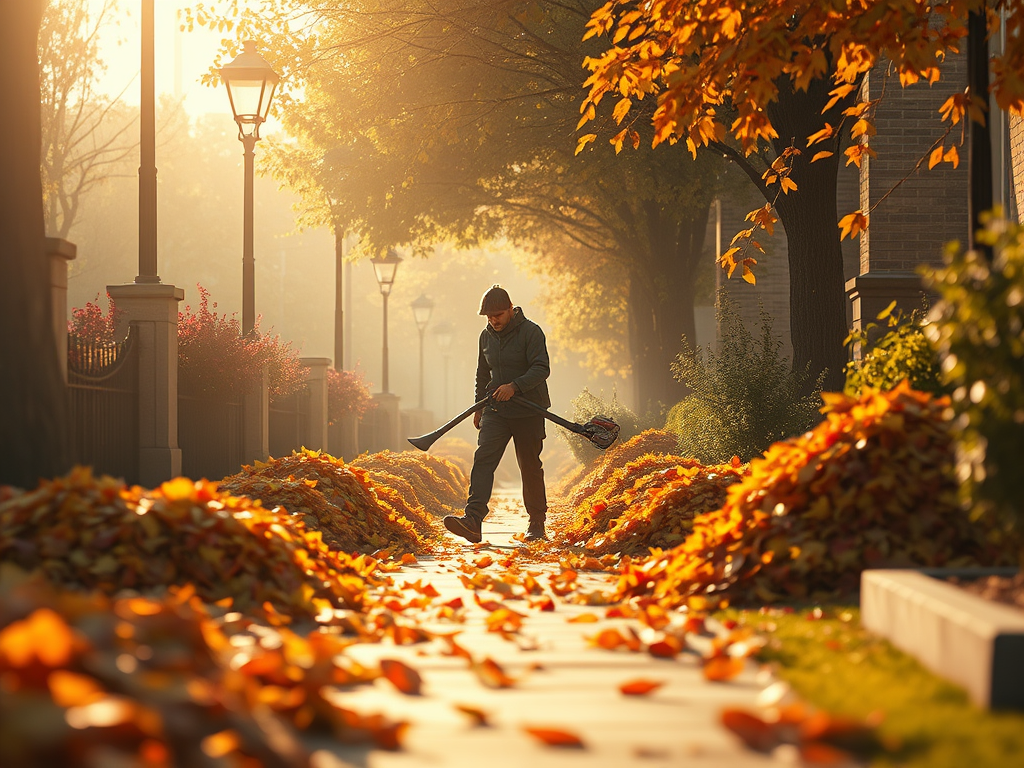 The mask wearing leaf blower. Many of us would like neat little piles but that is not how it works out even with a leaf blower.