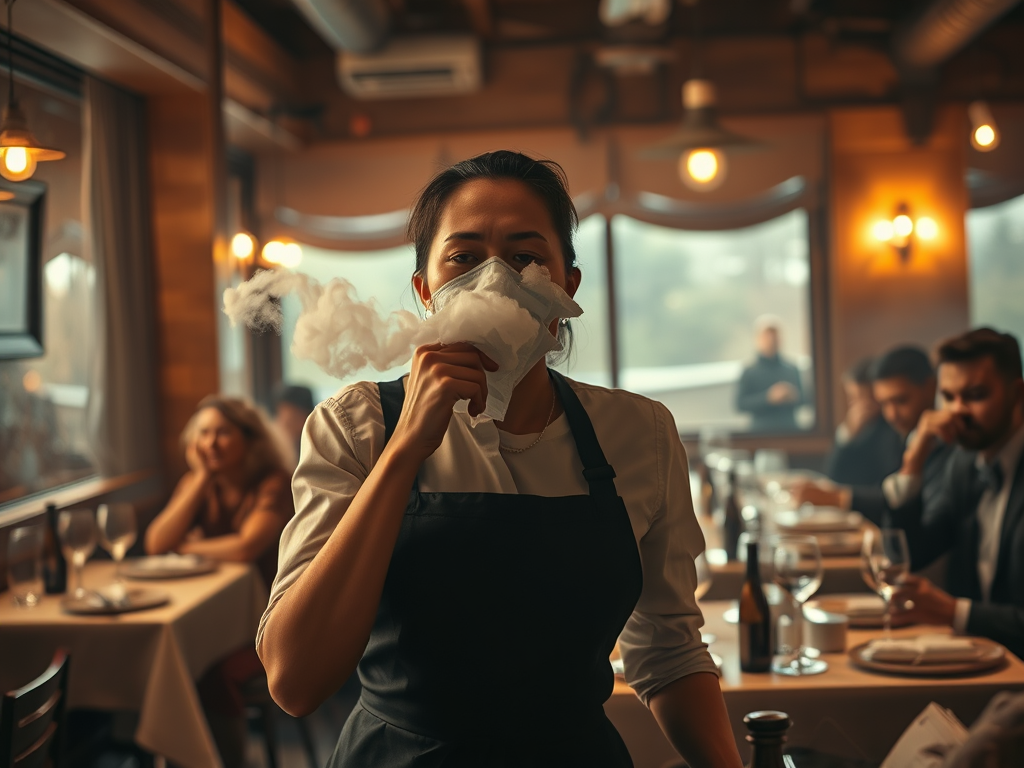 "I once saw a health-related commercial about someone's cough and how the virus can spread around a room. That's what I saw when our server coughed, a gaseous substance emanating from her mouth and infiltrating the dining room with a deadly virus. A faint voice in my head told me to leave--it's dangerous here. If only I had listened." Excerpt