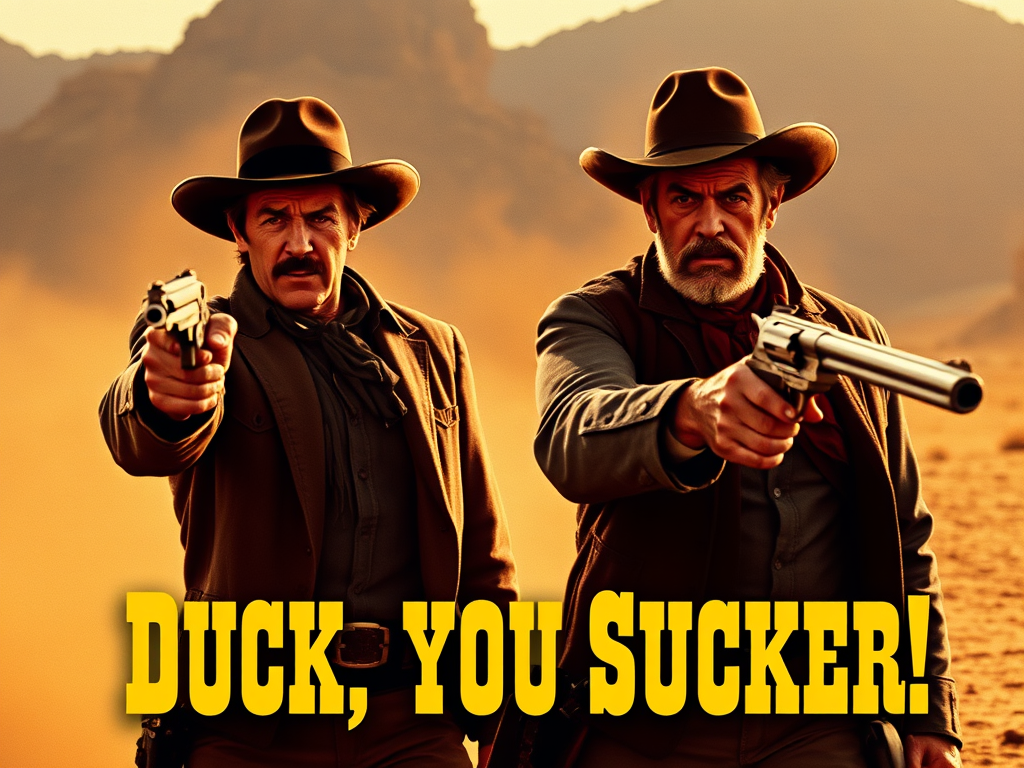 Poetry Vintage Movie Review: Duck, You Sucker! by Mark TulinOctober 16, 2025 Comments 4 An explosive Spaghetti Western with James Coburn and Rod Steiger, directed by Sergio Leone in 1972. Drama/Comedy. Set during the Mexican Revolution of 1910. View at Medium.com Link: Duck, You Sucker! Share this: Share on Facebook (Opens in new window) Facebook Share on LinkedIn (Opens in new window) LinkedIn More Share on X (Opens in new window) X Share on Pinterest (Opens in new window) Pinterest Share on Reddit (Opens in new window) Reddit Share on Tumblr (Opens in new window) Tumblr Like this:Like Loading... 4 comments on “Vintage Movie Review: Duck, You Sucker!” David Redpath October 19, 2025 They don’t make Spaghetti Westerns like they did in the pasta 🤠 🕶 Loading... Reply Mark Tulin October 23, 2025 Damn right. I’ll take the rigatoni. Loading... Reply Mark Tulin October 30, 2025 I miss the creativity. Loading... Reply David Redpath October 30, 2025 ‘The Good, the Bad, and the Tagliatelle’ . . . a truly al dente movie 🤠👍 Loading... Reply Leave a ReplyCancel reply Post navigation Previous Post Next Post